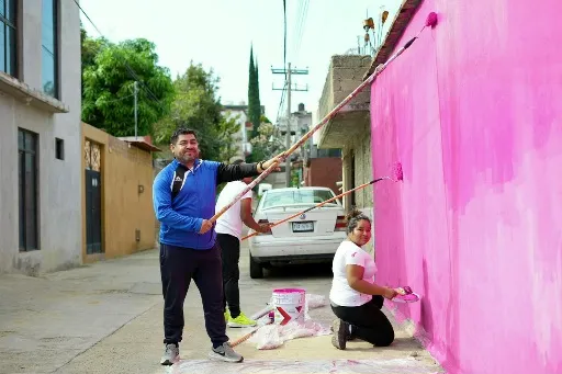 Oaxaca, Oax.- Con el objetivo de recuperar los espacios públicos en la entidad y en el marco del Día Internacional de la Tierra, que se celebra cada 22 de abril y la Copa Mundial de Fútbol 2026, el Gobernador Salomón Jara Cruz encabezó el Mega Tequio por la Tierra y Murales Mundialistas en la colonia Lomas de Santa Rosa, Oaxaca de Juárez.