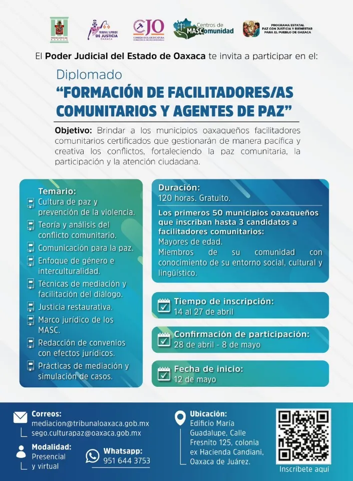 Se trata de buscar a personas con reconocimiento local y conocimiento de su entorno social, cultural y lingüístico, quienes serán capacitadas para intervenir en la resolución de controversias tras cursar un diplomado de 120 horas impartido por el Centro de Justicia Alternativa.