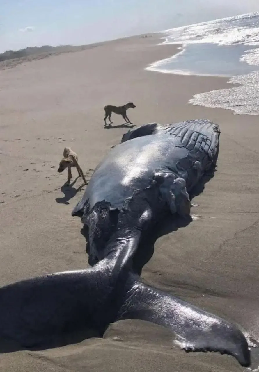 Oaxaca, Oax.- Una ballena fue hallada muerta la tarde del domingo en Playa de San Mateo del Mar en la región del Istmo de Tehuantepec.