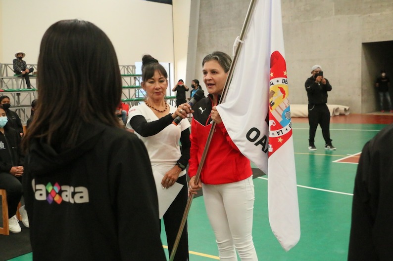 El evento se realizará del 24 al 29 de octubre y Oaxaca asistirá con una representación de 104 personas, de los cuales, 78 son deportistas y el resto entrenadores y entrenadoras, jefes de misión, jueces árbitros, delegados y oficiales, quienes en conjunto, buscarán las medallas en el evento que forma parte del Sistema Nacional de Competencias de la Comisión Nacional de Cultura Física y Deporte (Conade). Durante el abanderamiento, la titular del Incude Oaxaca, Montserrat de los Ángeles Aragón Heinze, felicitó a entrenadoras, entrenadores, padres de familia y deportistas, por hacer el máximo esfuerzo para representar al estado, por lo que a nombre del gobernador Alejandro Murat Hinojosa, les deseó éxito en cada competencia. ![]()