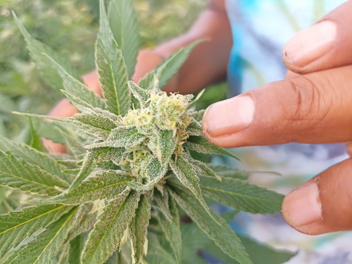 Con sus delgadas manos, Regina Hernández López de 25 años de edad -la productora más joven de Cannabis en la comunidad- toca las hojas verdes de sus seis plantas de marihuana, que son las que su permiso de Cofepris obtenido en 2020 le permite cultivar como legal, pero que hasta ahora no puede producir ni comercializar ningún derivado de sus plantas de cannabis.